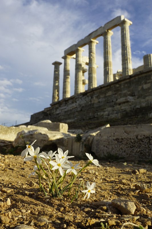 Our last day in the field will be a combination of flowers and culture. The partially restored site of Mystra is an intriguing ramble and not far from plane tree woodlands with the charming pure white Galanthus reginae-olgae. Hopefully, this will not be the last of our flowers. We will drive on and past Athens to the spectacularly positioned temple of Sounion where the purple striped cups of Crocus cartwrightianus will still be open along with Narcissus obsoletus and Sternbergia lutea, as the sun begins to set over the Aegean. Overnight Athens.