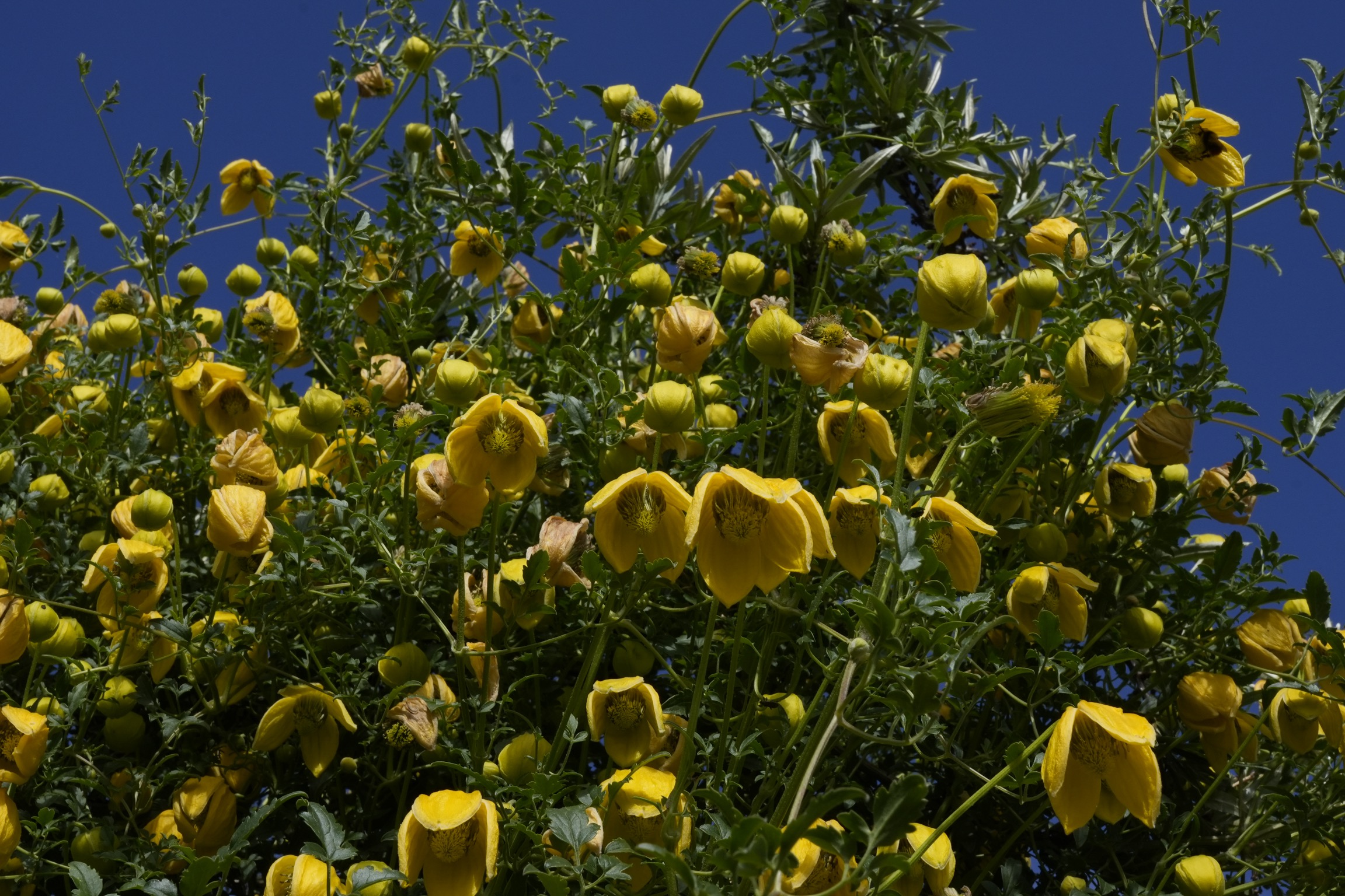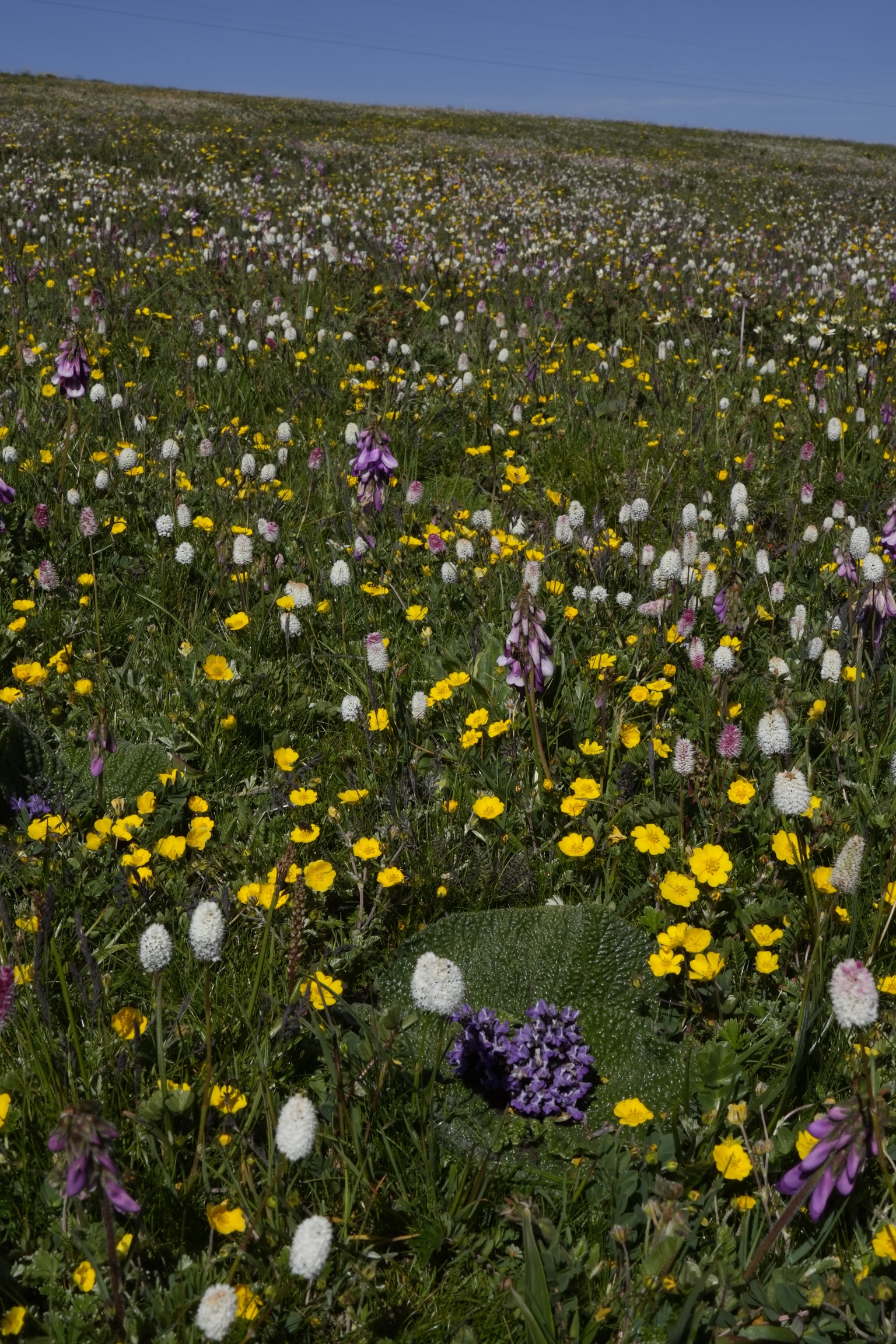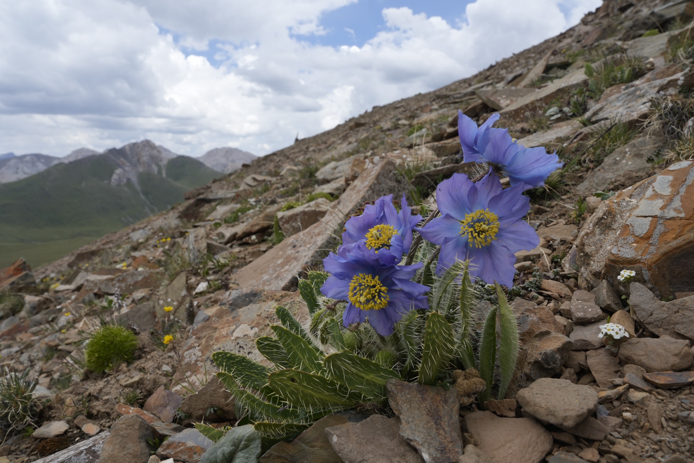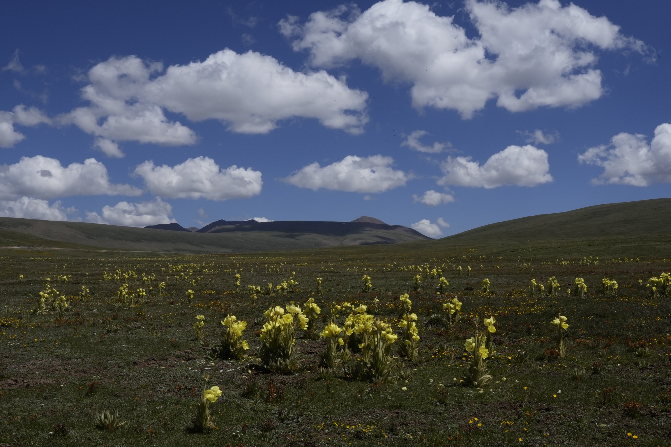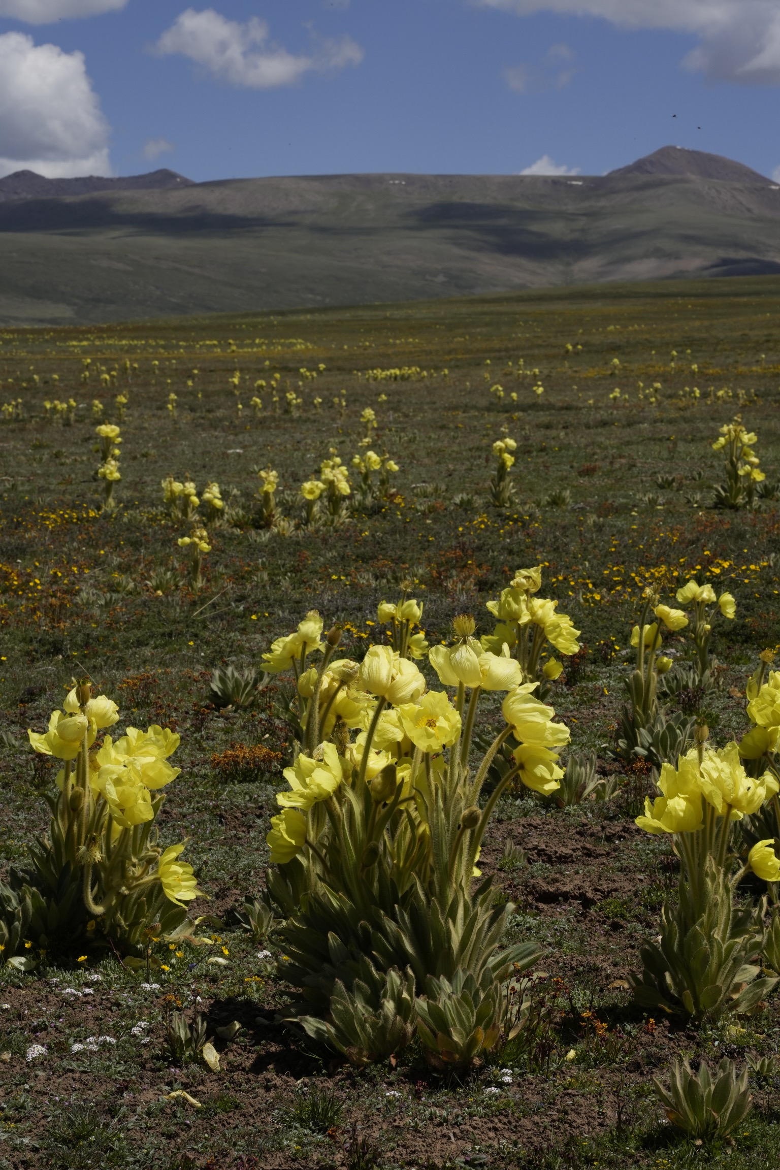 Remote Serxu lies on the edge of the vast plateau grasslands. Stands of Iris farreri dot the slopes flats and tumbling masses of Clematis tangutica drape lemon peel flowers across the rocks. Hidden valleys have breathtaking quantities of Meconopsis integrifolia and there is a remarkable and gigantic Tibetan mani pile to visit. A virtually unknown set of ridges has such a diverse mix of geologies that each slope is exciting and different. The scree are amongst the richest we find anywhere, stretching to over 5000 metres, a home to the big yellow bells of Fritillaria delavayi, Saussurea medisa, related Soroseris glomerata, Meconopsis horridula with Saussurea aster found on nearby limestone. The landscapes are spellbinding. Overnight Serxu at 4200 metres.