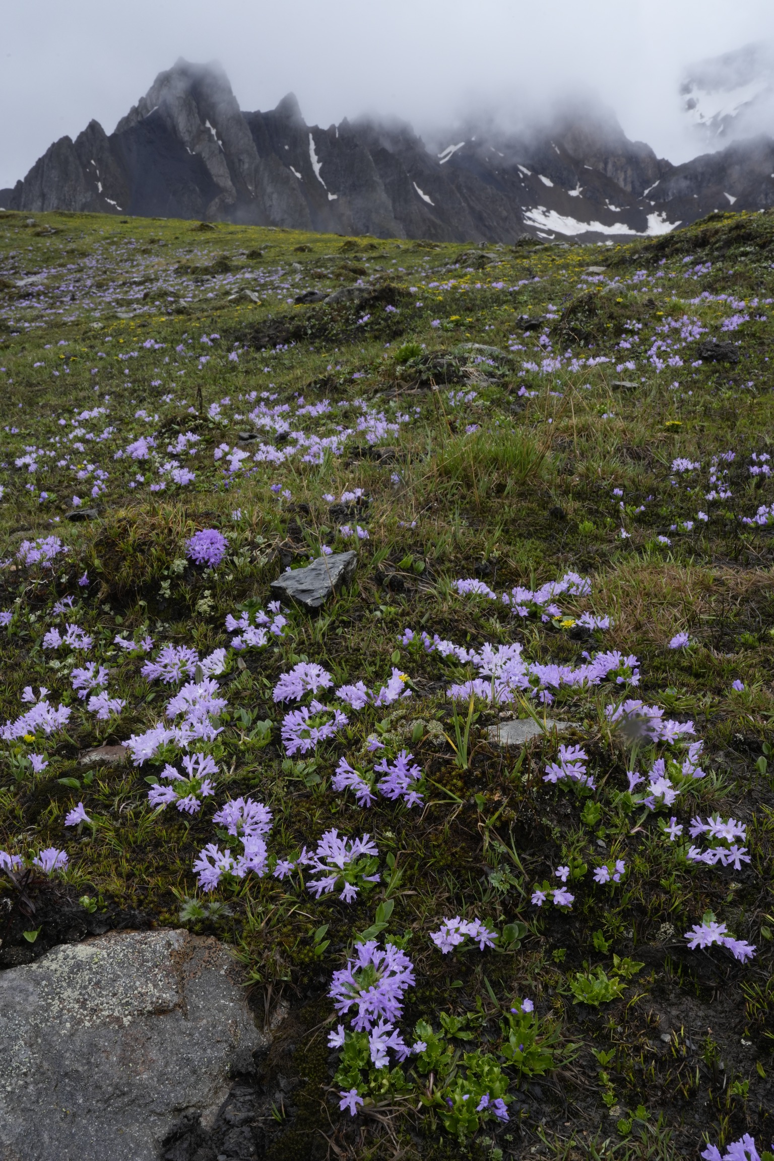 A stunning mountain landscape awaits, even among a country of such scenes. A road takes us to over 4800 metres among the raw granite ridges and peaks of this wild range. It is the realm of a very special high alpine, Chionocharis hookeri, as well as a suite of other interesting gems. 4200 metres.