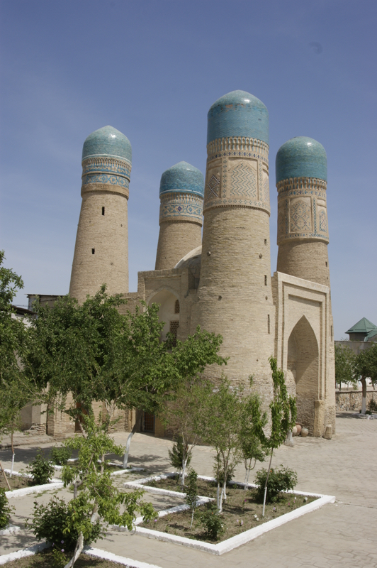 The desert reaches are large and so this morning we will fly onto Bukhara. The rest of the day will be spent enjoying a walking tour of this compact and fascinating city, taking in the quirky Chor-Minor Madrasah, the showpiece Kalyan Minaret is magnificent and nearby one can sit under the shade of mulberries in the attached Kalyan Mosque complex. There is the exquisitely constructed Ismail Samany Mausoleum, with the most intricate brickwork imaginable and we wil see a variety of other superb brick and blue tiled constructions including; Miri-Arab, Ulugbek and Abdulazizkhan Madrasahs, Lyabi Hauz, Magoki-Attori Mosque and the smaller Bolo-Khauz Mosque with wooden supporting columns. Huge walls still surround part of the Ark Fortress a reminder of the past glory and strength of Bukhara and we will walk through the vaulted ceilings of the restored trade domes where many a deal was struck in the past and great place to find finely-constructed handicrafts today. Overnight at the hotel.